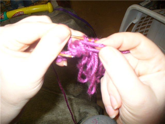 На фото я как раз провязываю это (уже петлю вытянула ''на себя''):