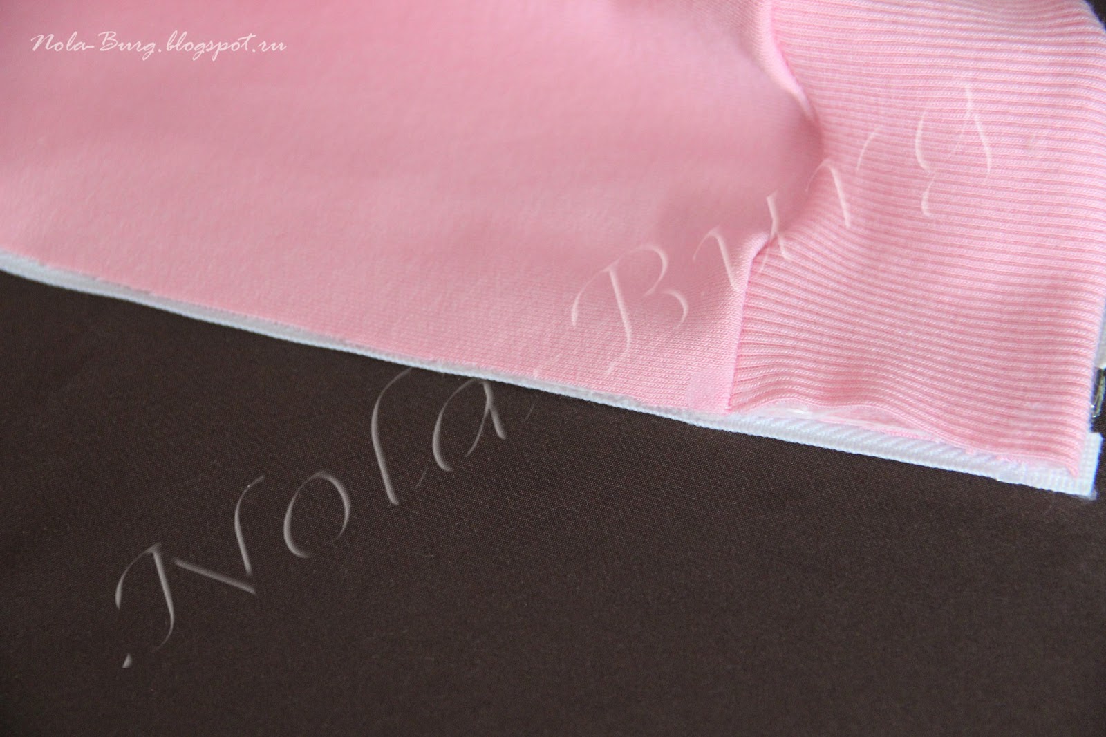 Края полочек  и нижнюю часть из рибаны проклеиваю  нитепрошивной лентой, я ее разодрала на две половинки, что бы была поуже.