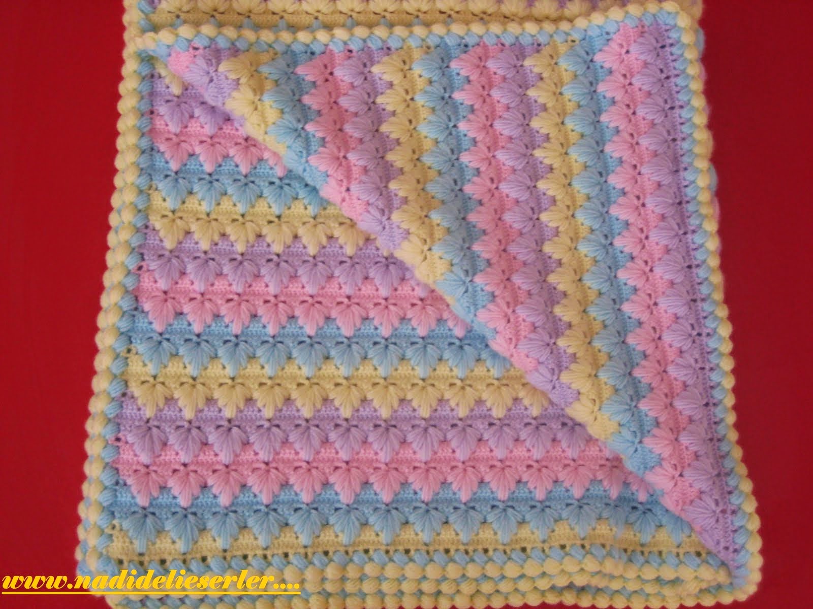 Узор из пышных столбиков " Гусиные лапки" Pattern "Crow's feet" и плед из него