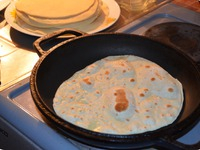 9.Готовые лепешки обжариваем на сухой!!!! сковороде,без добавления какого-либо масла! Лепешечка покроется пузыриками и на ней появятся золотистые точечки- значит готово!