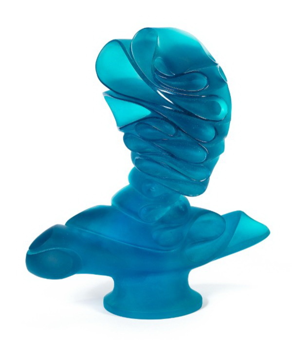 Жан Фошер (Jean Faucheur) – французский скульптор и художник, объектом творчества которого была человеческая фигура и ее деконструкция. Работы скульптора наполнены философскими метафорами. Совместно со стекольной мануфактурой «Daum» Фошер создал скульптуру «Masque de Verre» («стеклянная маска»). Оригинальный арт-объект выполнен из синего хрусталя в технике pâte de verre. Скульптура, как бы сложенная из бумажной ленты, напоминает бюст человека, наклонившего голову.