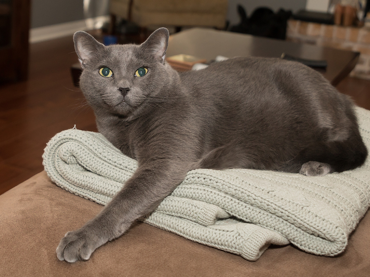 Пушистая интеллигентка не станет заводить дружбу с каждым встречным-поперечным. Русская голубая — этакая кошка для избранных. Она долго присматривается к людям и назначает хозяином одного, максимум двух домочадцев. Чужих такая кошка сторонится, предпочитая ретироваться в дальнюю комнату. Никаких фамильярностей и панибратства!