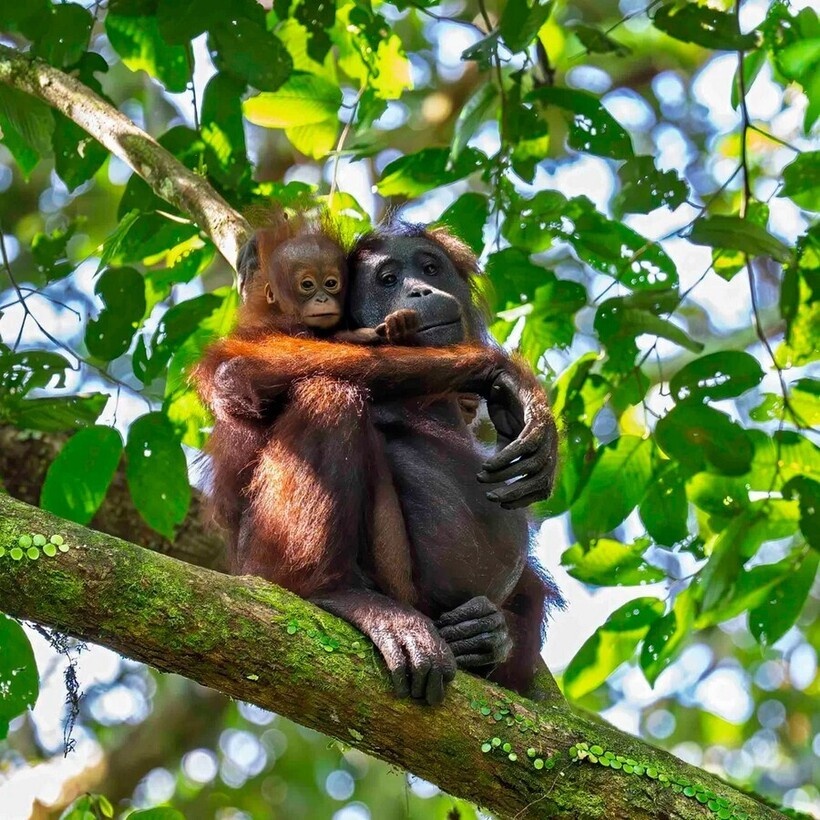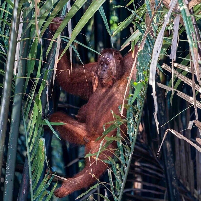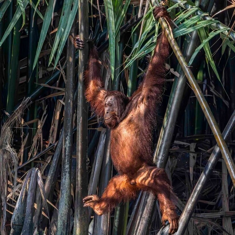 Орангутаны двигались среди верхушек деревьев, словно тени, демонстрируя удивительную ловкость
