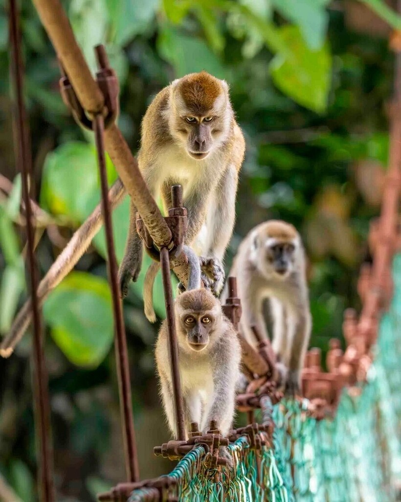 Макаки наблюдали за фотографом с безопасного расстояния, изучая незваного гостя