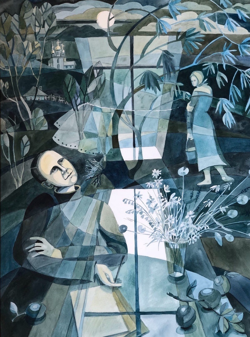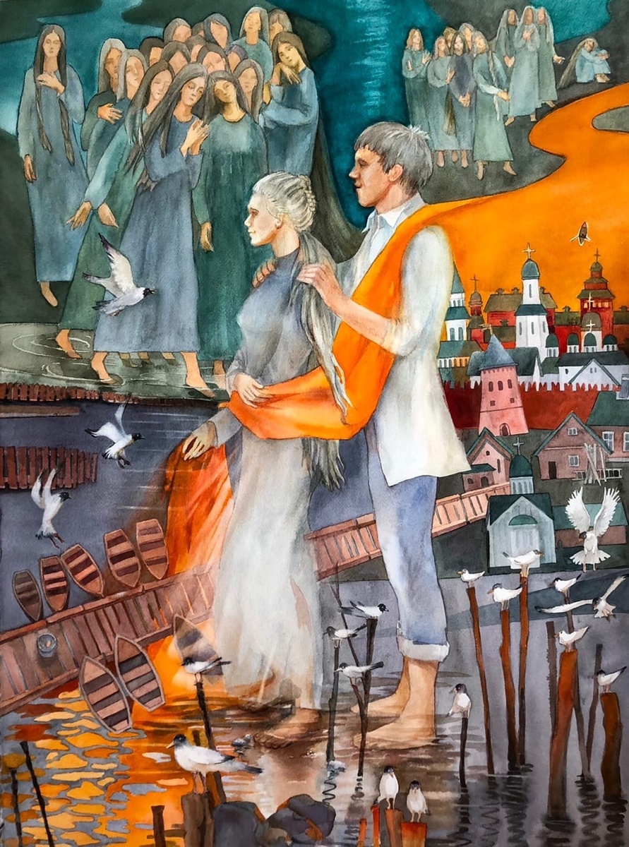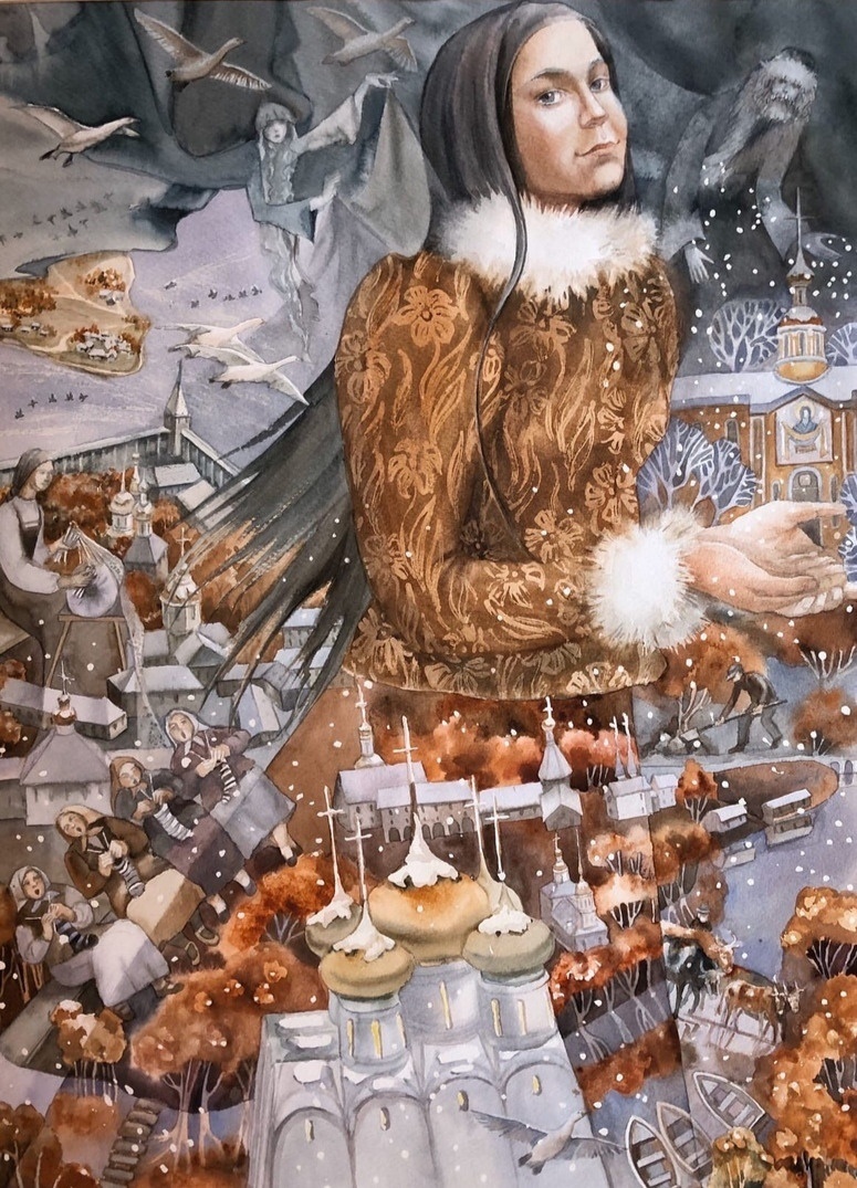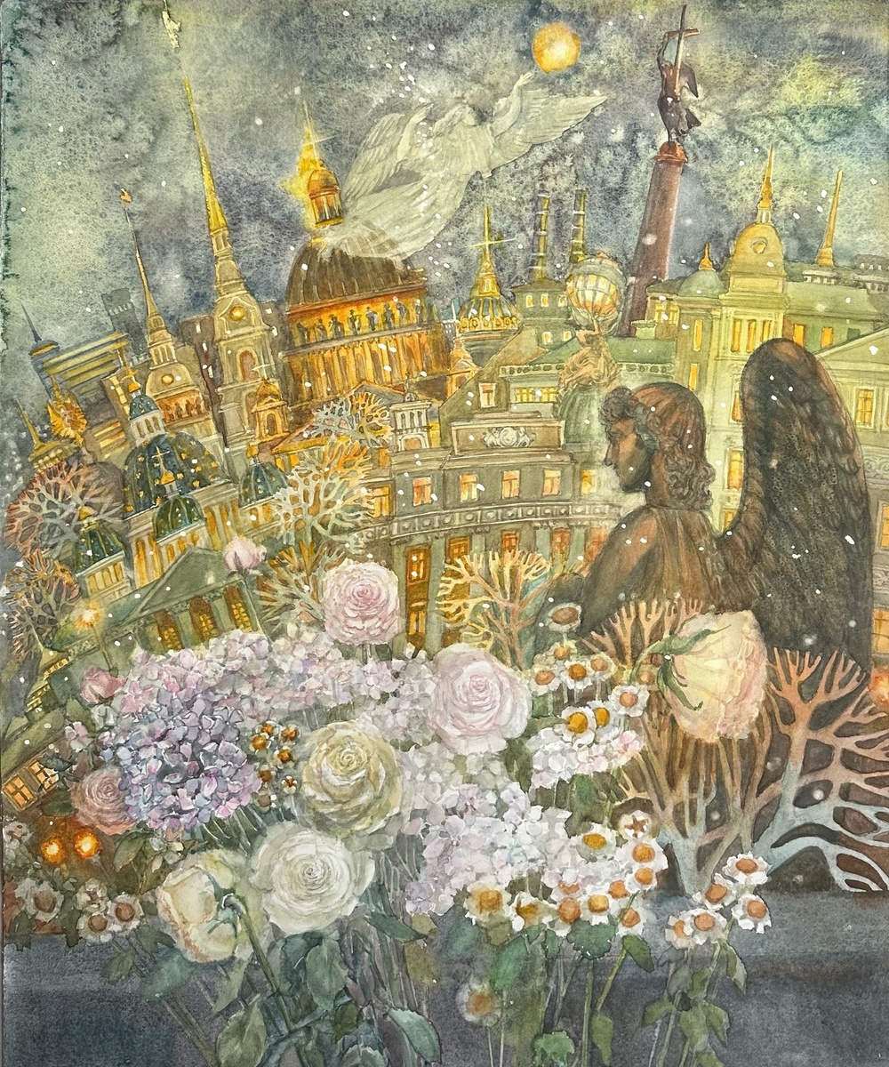 У Марины Фазановой много сюжетных акварелей, церковных историй и религиозных тем. Есть работы с глубоким философским контекстом, которые останавливают внимание и погружают в себя надолго.