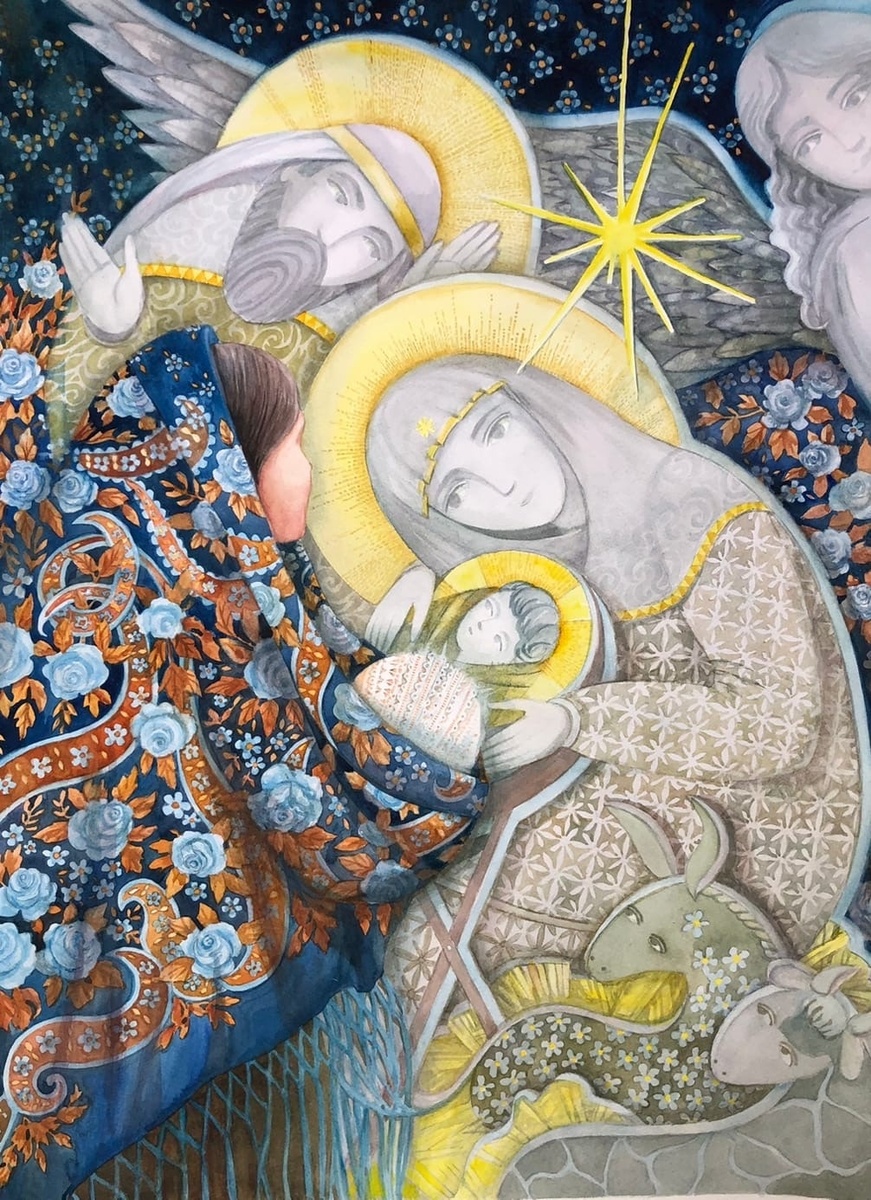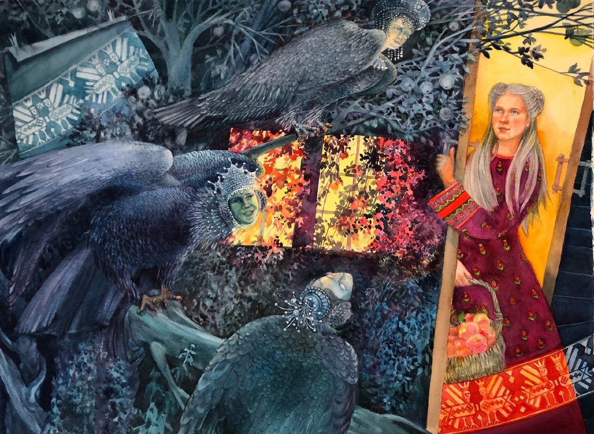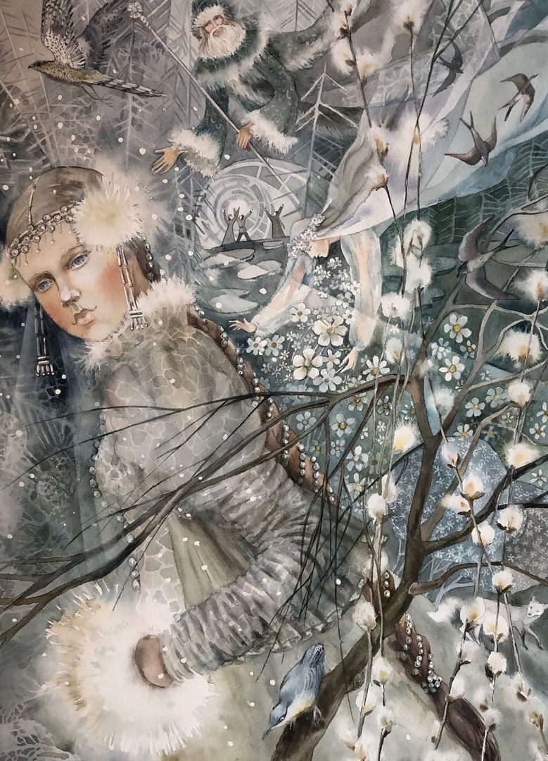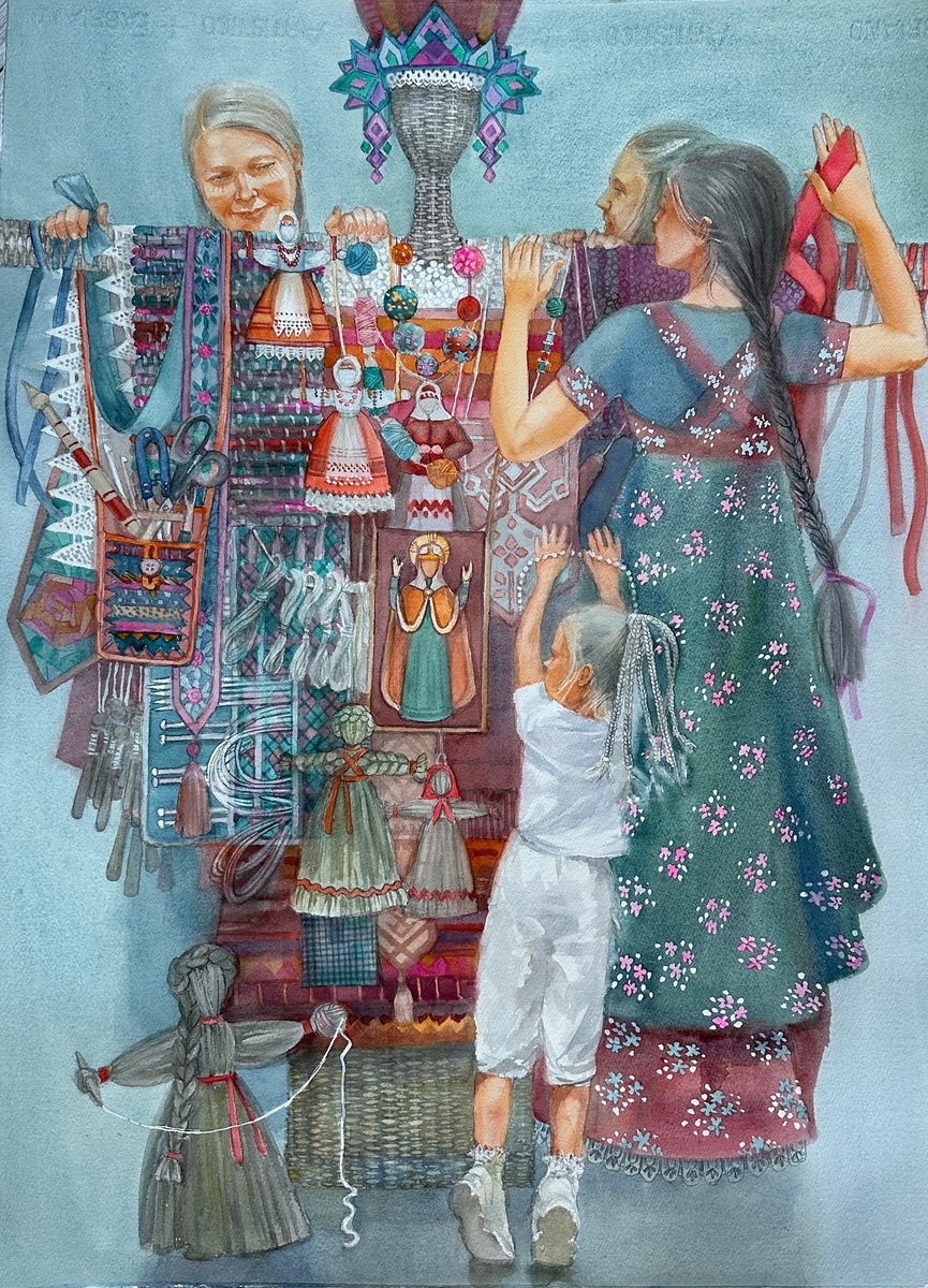 У Марины Фазановой много сюжетных акварелей, церковных историй и религиозных тем. Есть работы с глубоким философским контекстом, которые останавливают внимание и погружают в себя надолго.