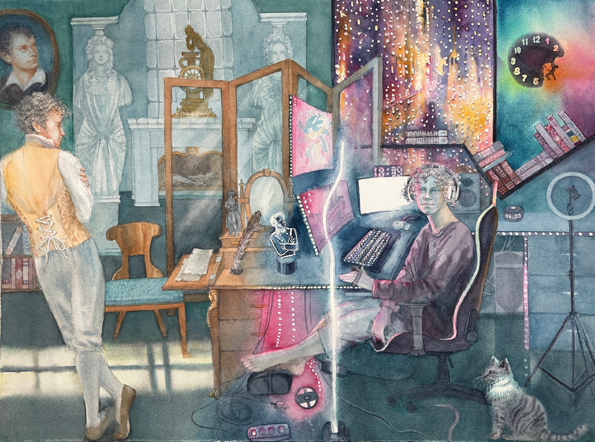 Особо примечательны темы, которые затрагивают русскую старину. А еще большой отклик у зрителей находят акварели, посвященные литературным произведениям.