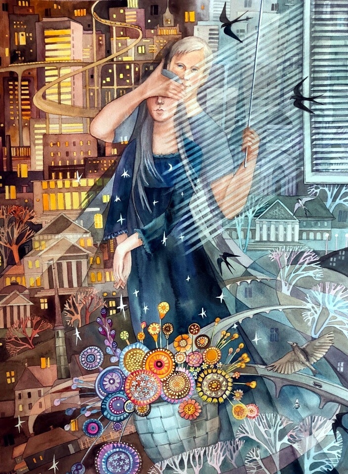 Наша сегодняшняя героиня - одна из таких. Она владеет акварелью мастерски! Ей удается передать сюжет, создать настроение, прочувствовать атмосферу и при этом наделить свою работу психологическим колоритом, если так можно выразиться.