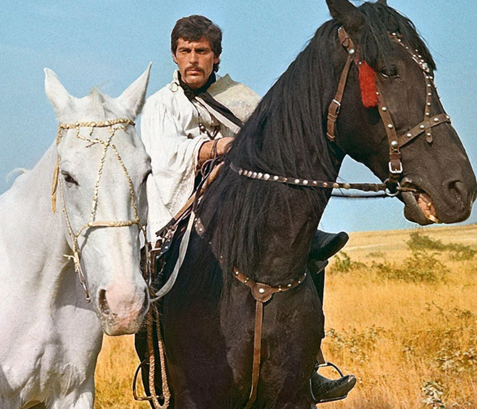 На съемках он отказался от дублеров. Вставал на рассвете, шел через весь город на конюшню, чистил своего скакуна Рамзеса и учился висеть вниз головой в седле. Однажды эта самоуверенность едва не стоила жизни и ему, и юной партнерше.