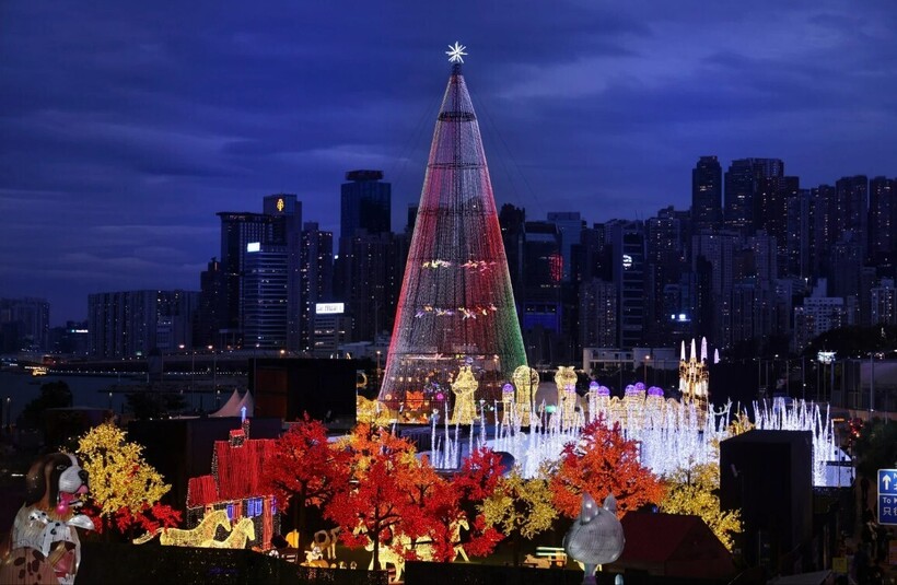 В Гонконге на выставке иммерсивных инсталляций сверкает гигантская елка