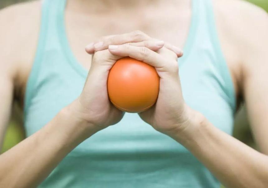 Возьмите резиновый мячик или плотно свёрнутое полотенце. Сожмите с максимальным усилием, удержите три секунды, отпустите.