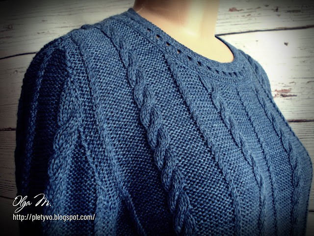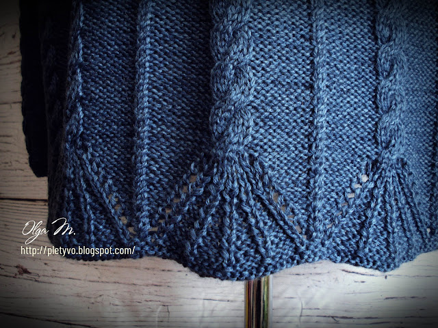 Далее продолжала вязать изнаночной гладью с дорожками косичек на ней.
