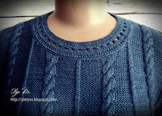 Низ рукавов обвязала крючком столбиками без накида (3р.).