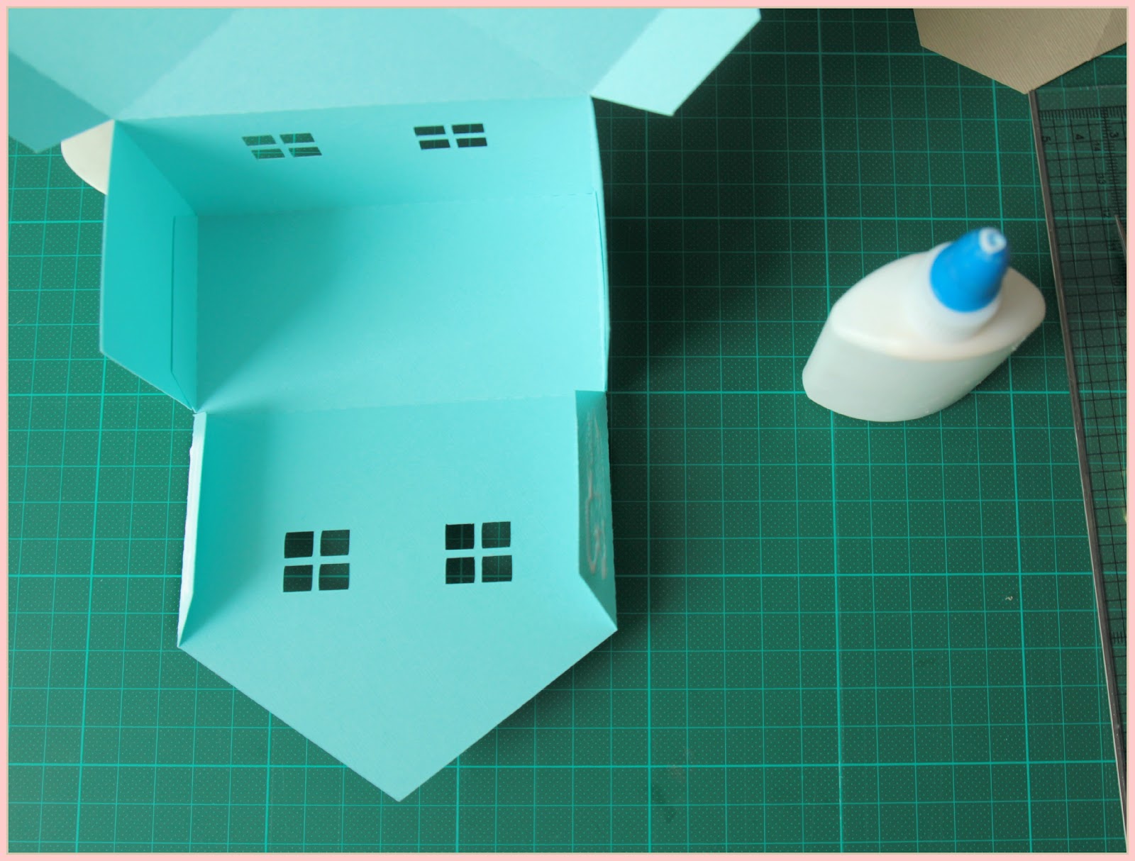 И так же, как склеивали крышу самого домика, склеиваем и эту детальку и соединяем с самим домиком.