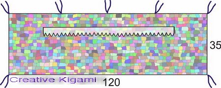 Обработайте края однотонной ткани, разместите её в центре детали бампера, пристрочите. Верхний край фона украсьте оборкой.