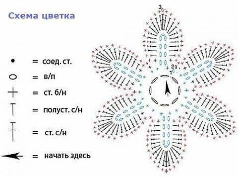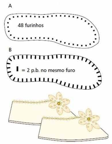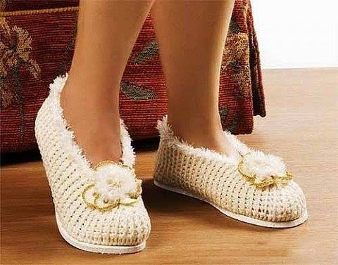 [640x502] Симпатичные домашние тапочки с цветком в качестве украшения. Размер: 36 (стелька 37-38 размера) Материалы: пряжа Linha Camila Fashion (100% хлопок, 100 г/500 м), немного пряжи «травка» и пряжи с металлической нитью для отделки, крючок № 2, стельки. Толстой иглой или шилом проделать отверстия на стельках, отступив 1 см. от края – всего 48 шт (лучше – больше). В каждое отверстие выполнить по 2 СБН = 96 СБН. дырочки и обвязка Во втором ряду вязать ССН в каждый столбик, одновременно прибавить 18 столбиков по передней части стельки = 114 ССН. Следующие 5 рядов вязать: *1 ССН за переднюю арку петли, 1 ССН за заднюю арку петли, повторяя от *. В следующем (7-м) ряду начать формировать верх пальчиков, для чего провязать 3 ССН на мыске вместе (3 незаконченных ССН, связанных вместе). Повторять такие убавки до 12-го ряда работы. Обвязать верхнюю часть тапочка нитью «травка» (по 1-му СБН в каждую петлю). Связать второй тапок таким же образом. Цветок (2 детали): вязать по схеме