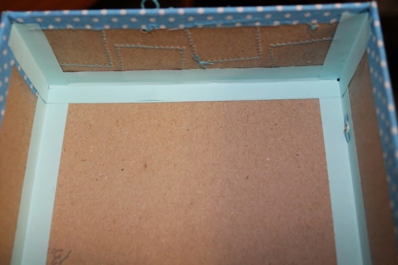 Я обклеила стенки коробочки голубым кардстоком. Сверху на крышках сделала мягкие тканевые накладки. Принцип изготовления таких накладок я расскажу ниже, если Вам интересно. Вы можете оформить коробочки по своему вкусу.