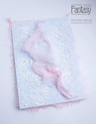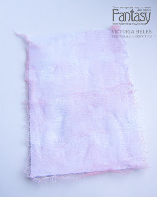 На лицевой стороне фона при помощи меньшего кусочка марли задаю форму будущей композиции. Закрепляем точечно клеем,чтобы сохранить воздушность материала.