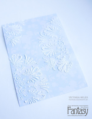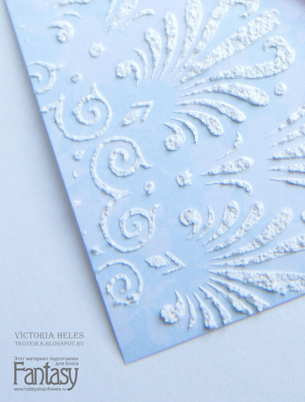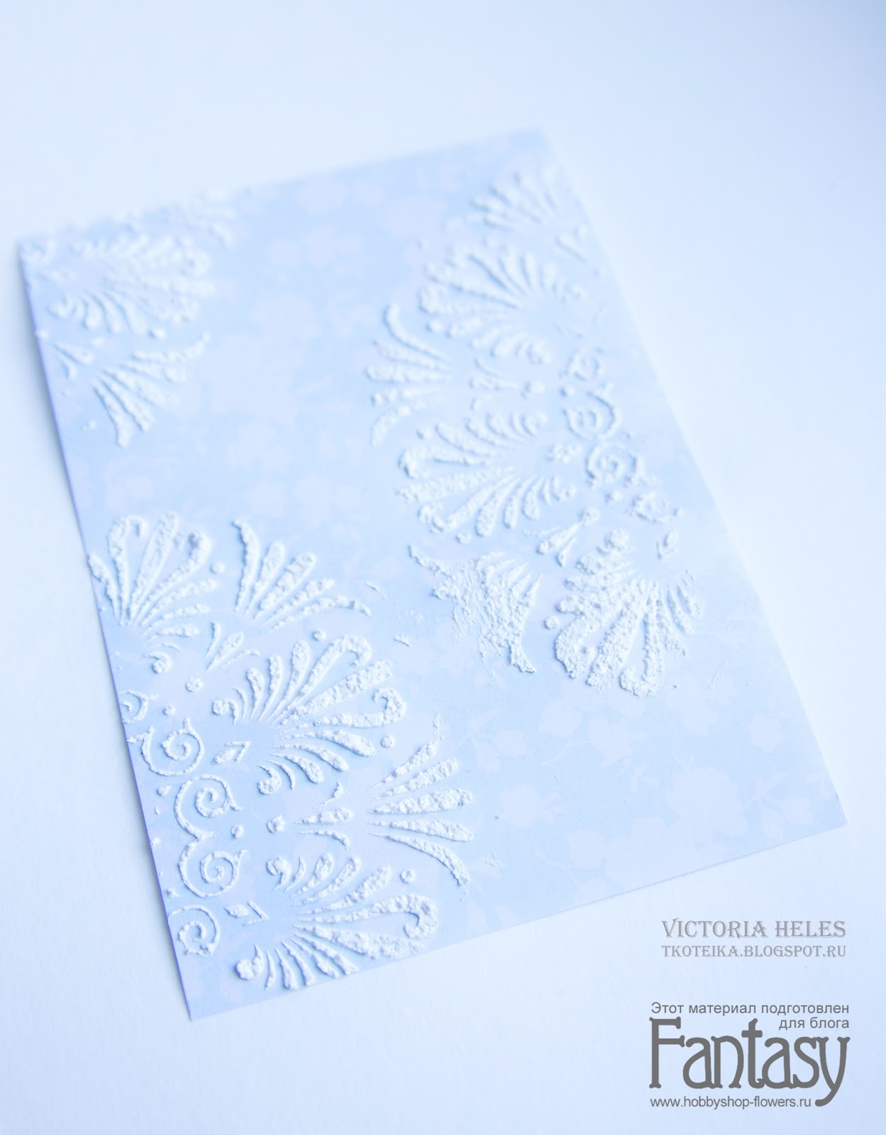 Мне нравится в шебби-работах использовать пасту с песком, из-за фактуры получающегося рисунка. Фоновый лист просушим феном. (если бумагу слегка поведет, то нужно положить под пресс на некоторое время).
