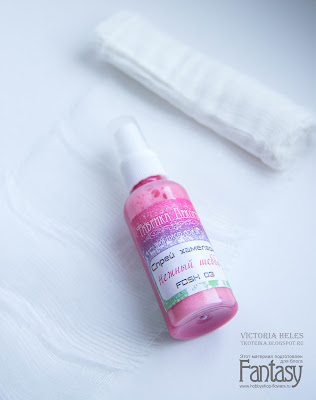 Далее понадобится медицинский стерильный бинт или обычная марля и спрей контрастного оттенка. Я выбрала розовый, в соответствии с палитрой задания.