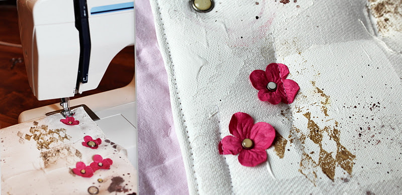 Придадим романтичности с помощью цветочков, которые крепим к обложке с помощью брадс или пуговиц:
