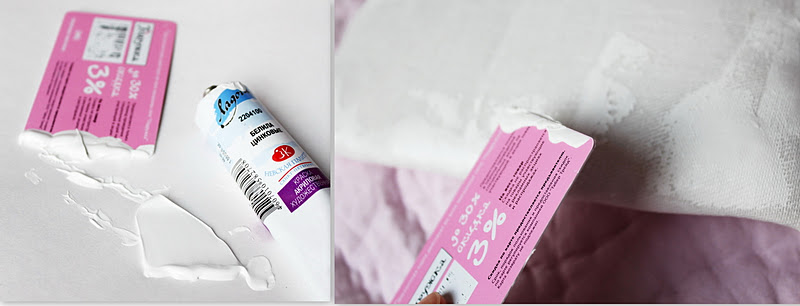 Теперь берём акриловую краску и пластиковую карту. При помощи этой карты наносим краску на наши заготовки: