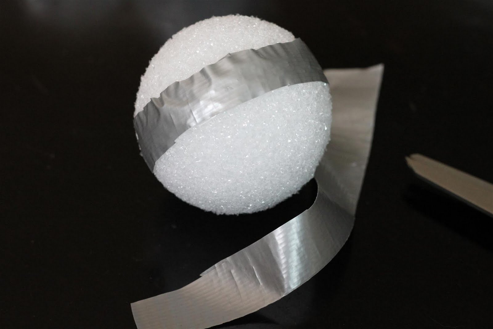 2. Держите применением ленты, пока весь шар из пенопласта покрывается.