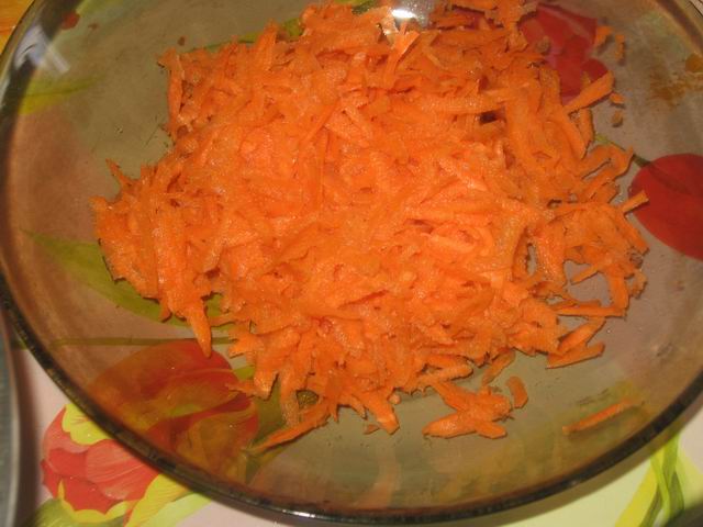 Сверху присыпаем морковкой, заливаем всё сливками или молоком. Не надо много. Достаточно 1 стакан.