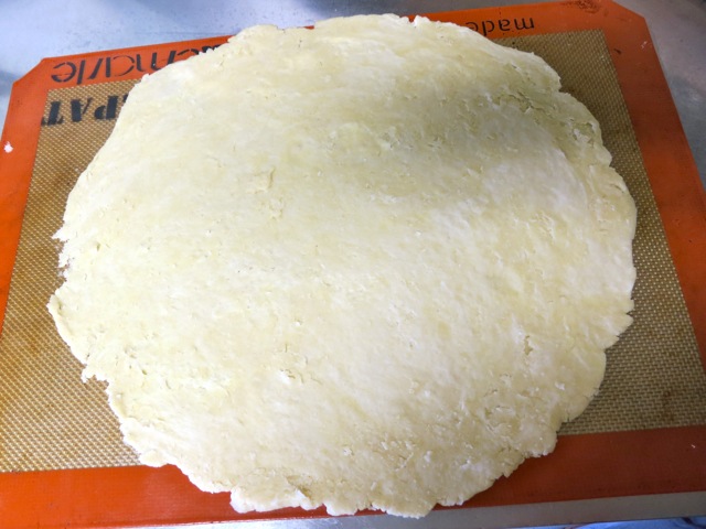 На слое пластиковой пленки или на силиконовом коврике раскатываем тесто в пласт толщиной примерно 5 мм.