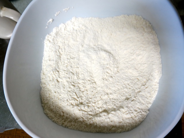 Муку смешиваем в миске с солью и сахаром (если используем его).