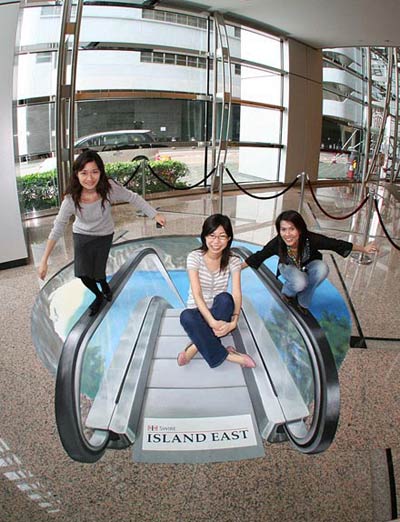 Суть этой техники заключается в рисовании на тротуарах изображений с использованием специальной техники искажения и наклона, благодаря которой картины под определенным углом кажутся трехмерными и вполне реальными. Когда угол обзора меняется, изображение теряет свой объем и превращается в несуразную картинку.
