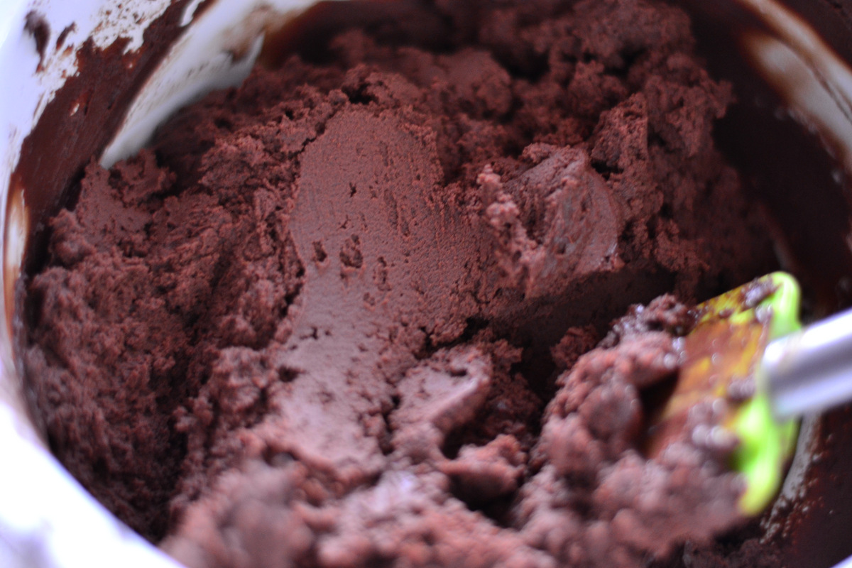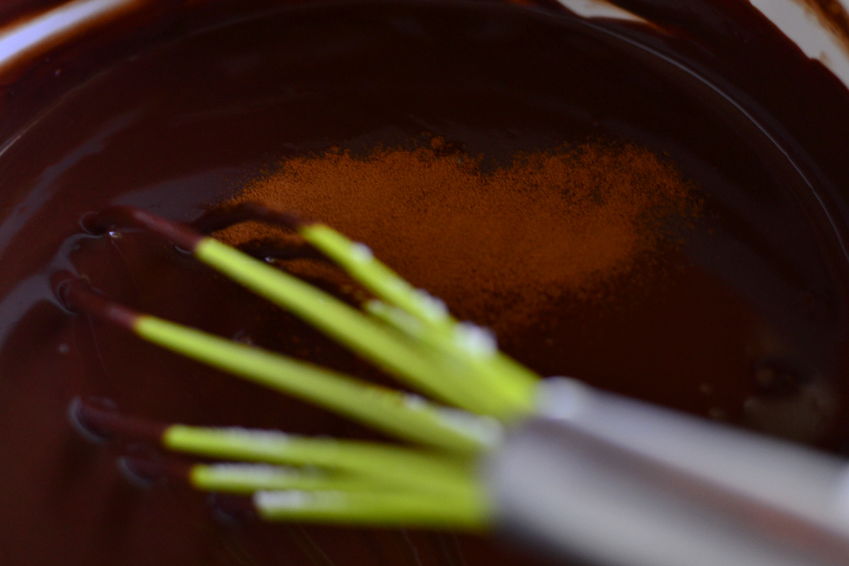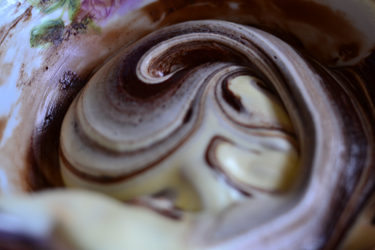 Теперь взять не большую часть взбитых яиц и добавить к растопленному шоколаду, аккуратно перемешать.