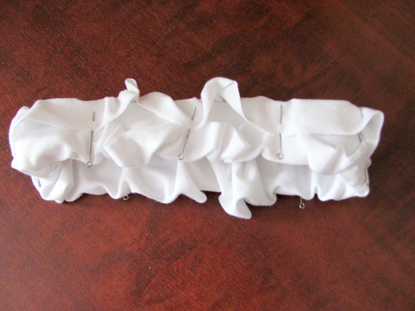 4. Равномерно распределяем ткань вокруг резинки, скалываем или сметываем.