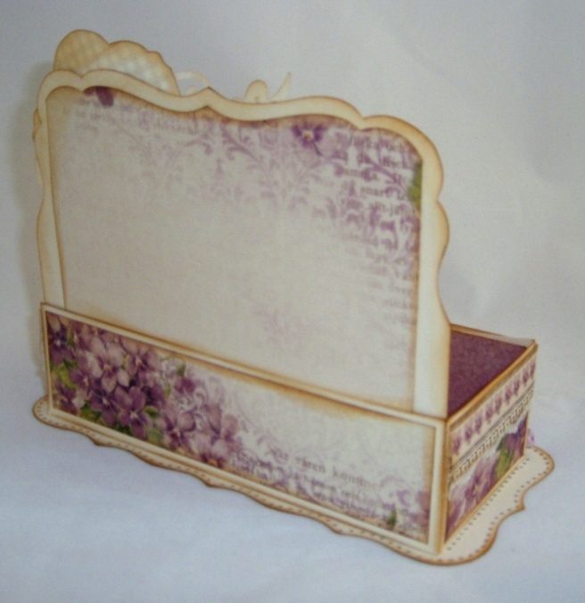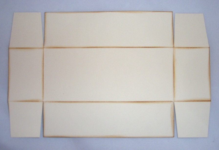 I decorate the back panel before I attach it to the box. Here I have added double sided tape to the lower part of the back.