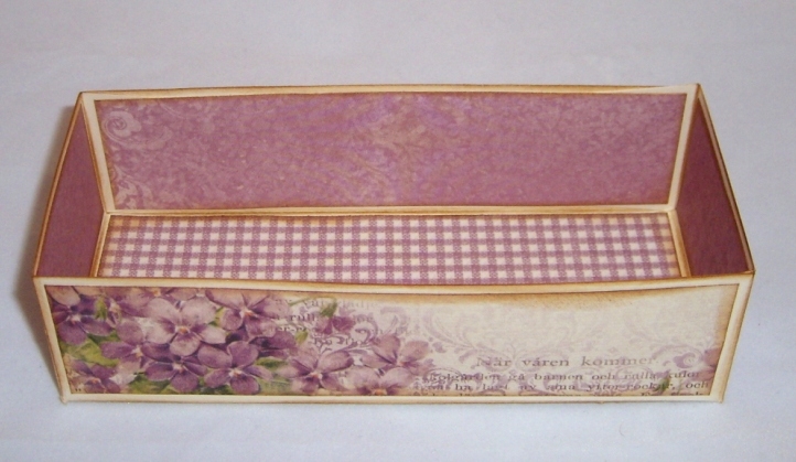 På innsiden dekorerer jeg først bunnen og de to kortsidene.
