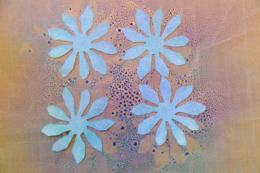 Move the flowers around in the Glimmer Mist very gently as these die cuts are delicate when wet. Make sure the color is saturated throughout the card stock.