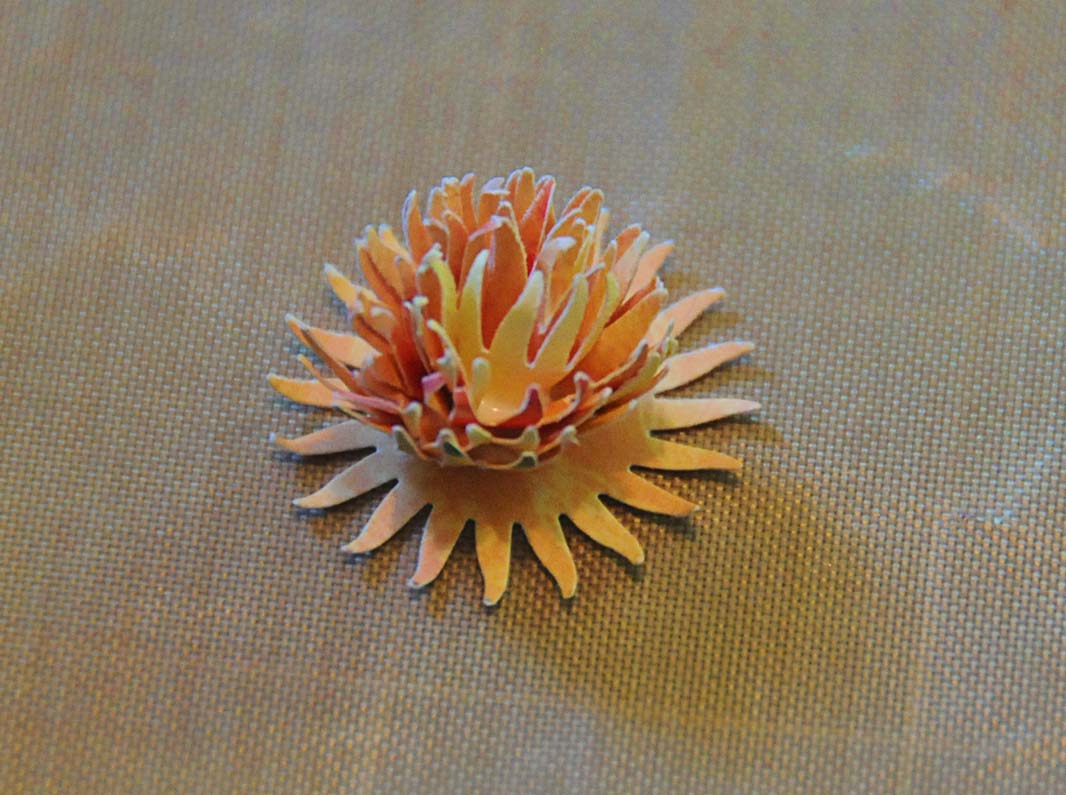 Stack the cupped shaped suns one into another to form a cluster. then place the cluster onto the flat piece.
