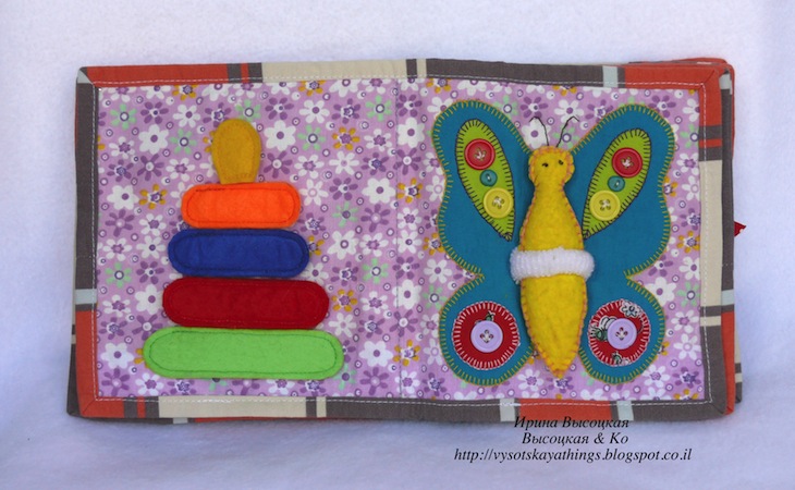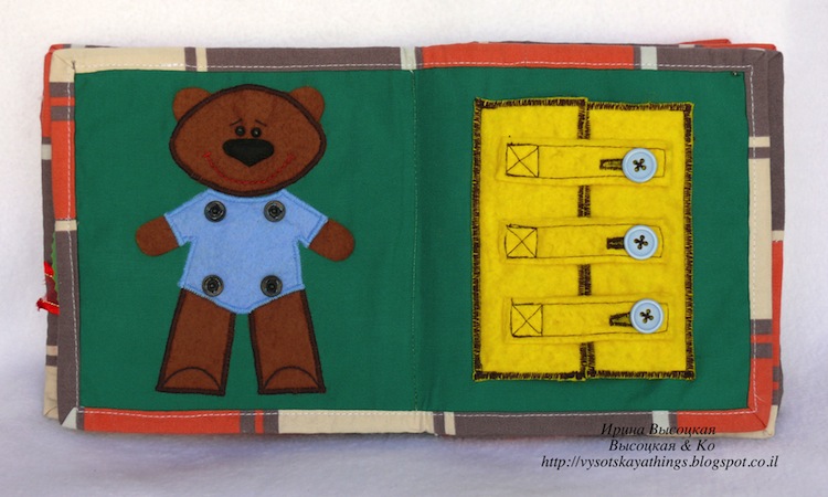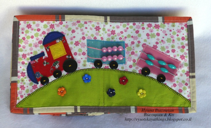 Таким образом, фактически в книжке 20 развивающих страничек. Некоторые из них нам еще откровенно рано читать, но я специально делала книжку с учетом роста сынули. В книжке достаточно мелких деталей, бусин, Конечно же, я все это надежно закрепила, но у маленьких деток часто бывают сила богатырская и зубы острые :-))))), поэтому с этой игрушкой ребенок один не играет.