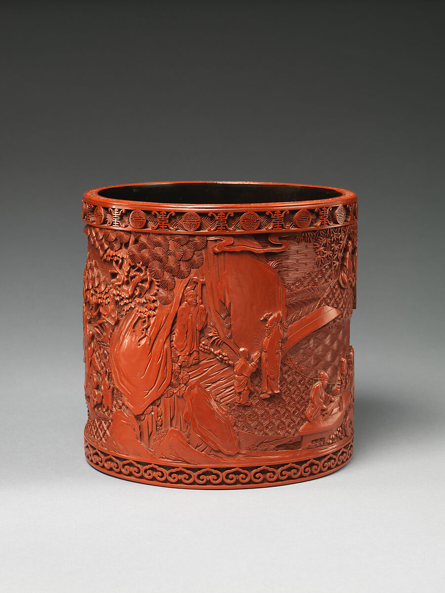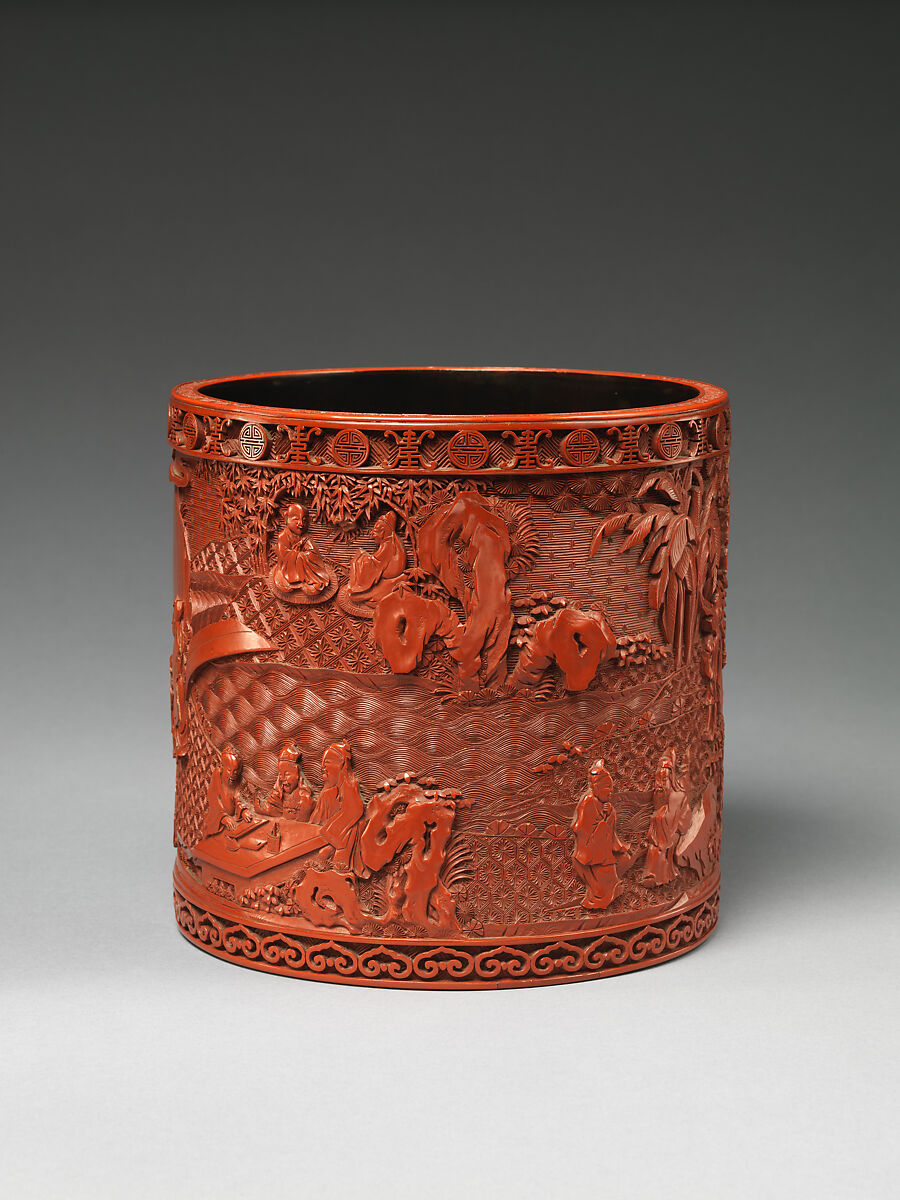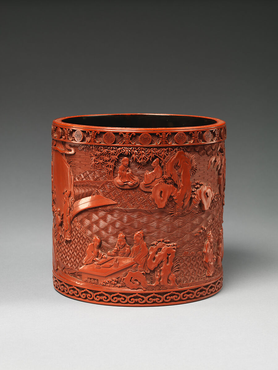 Этот горшок кисти показывает, что ученые пишут, рисуют и наслаждаются природой-действия, найденные в образах ученых-чиновников во всем китайском искусстве. Сцена также напоминает знаменитые исторические встречи ученых людей, таких как в Западном саду, резиденции императорской семьи одиннадцатого века.