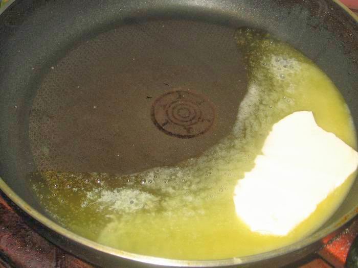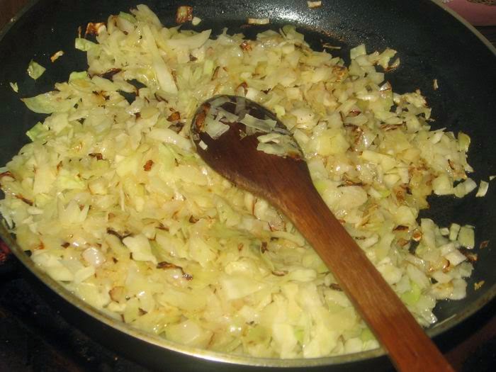Потом на сковороде растопить сливочное масло, на нём мы обжарим капусту до лёгкой румяности.