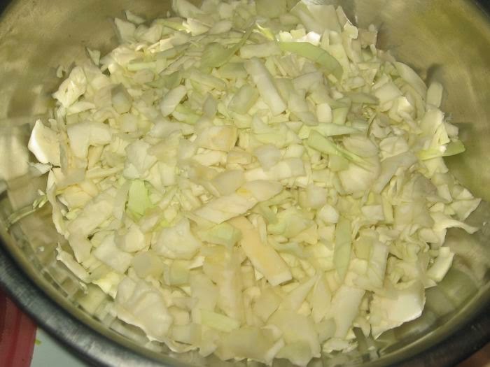 Сначала измельчим капусту, надо либо мелко порезать её, либо порубить.
