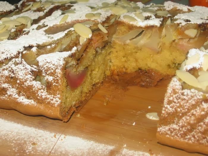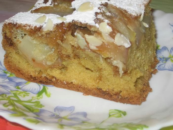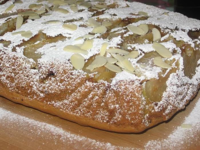Посыпаем сахарной пудроц и миндальными лепестками.