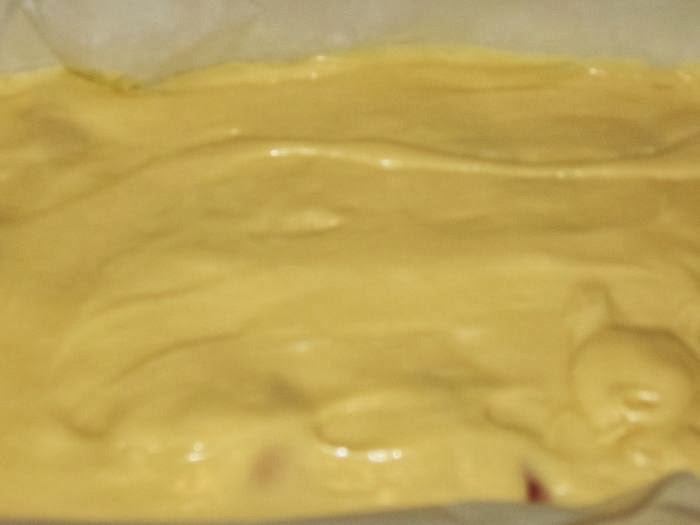 Готовое тесто вылить на приготовленные яблоки