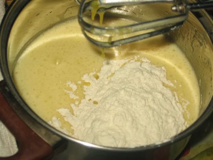 Размешать, постепнно добавить муку.