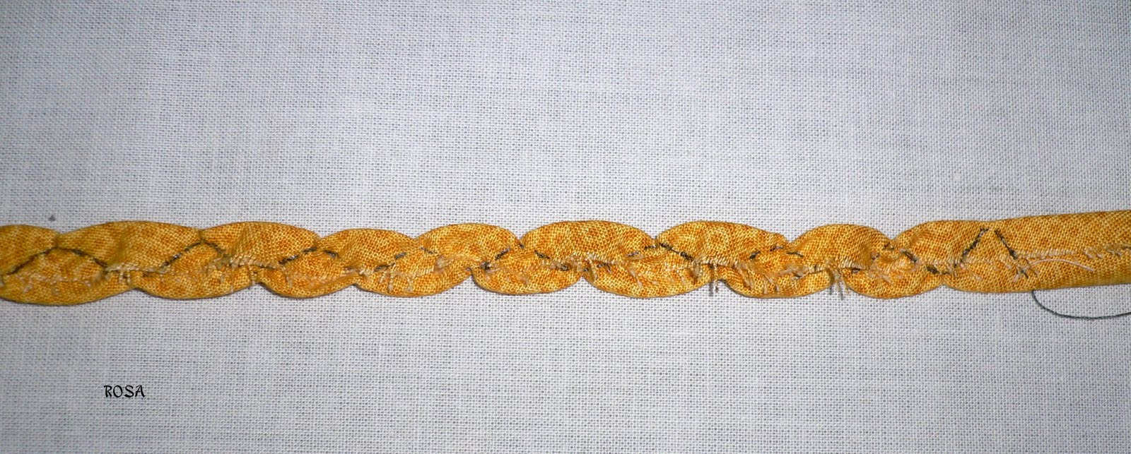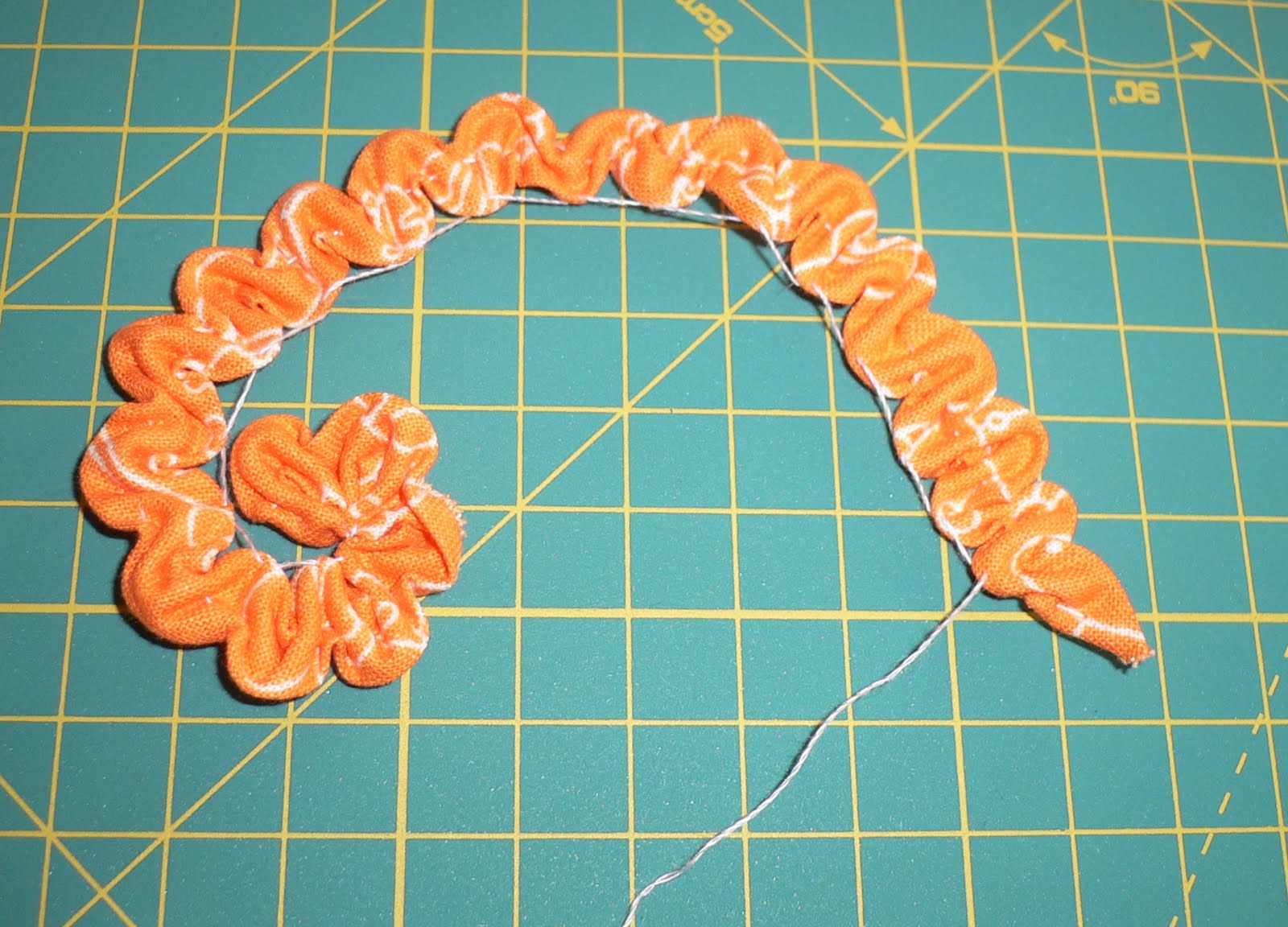 Вырежьте полоски ткани 3,5 см х 1,00 м.