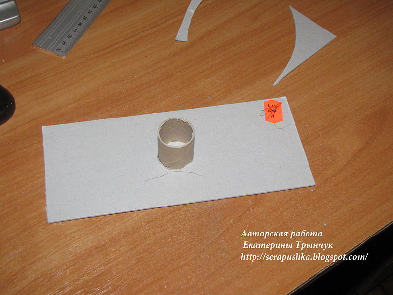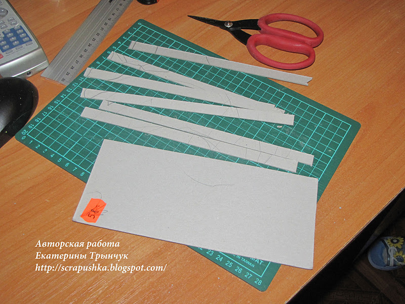 3 этап:Теперь начинаем наматывать нашу полоску на картон (1х30 см - можно и короче сделать). Начало закалываем булавкой, наматываем немного заходя на предыдущий слой.