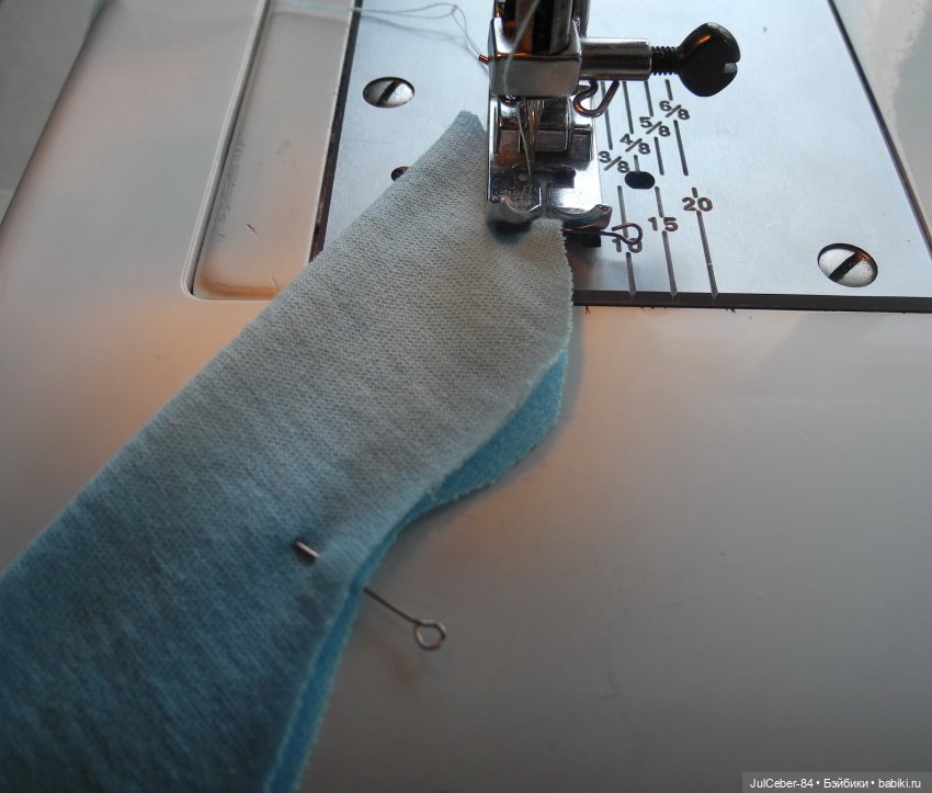 прострочив одну деталь, сразу прикладываем вторую и строчим, так удобнее