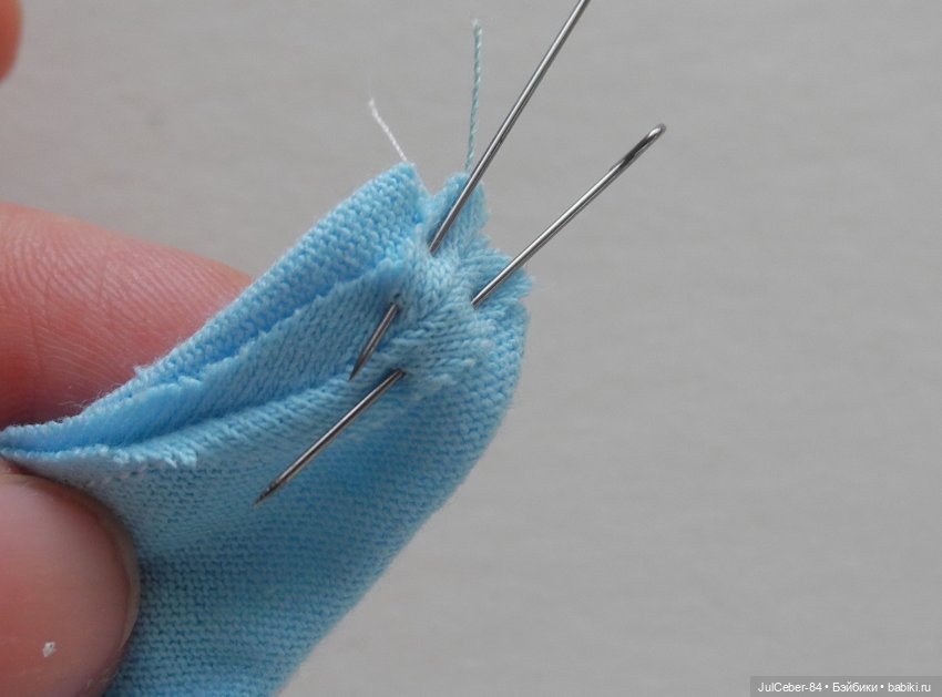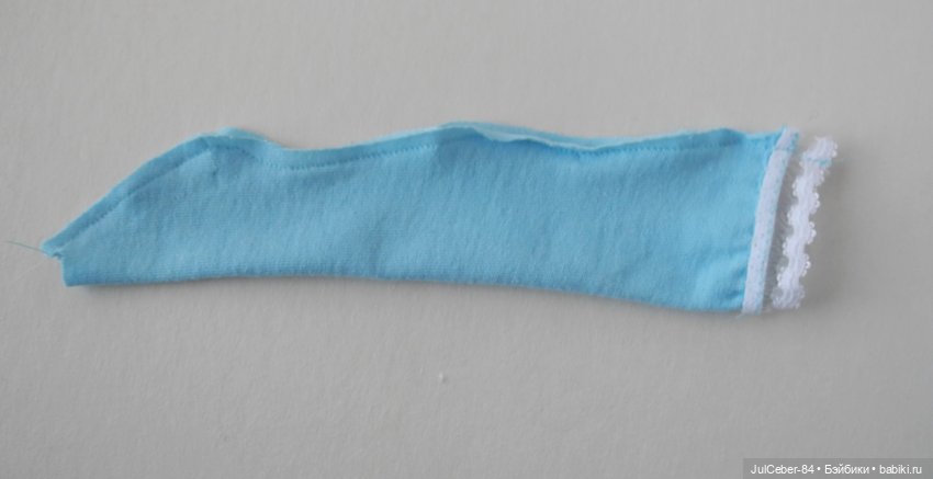 выворачиваем чулочки и закрепляем ручными стежками край шва чтобы верх чулочка был аккуратный