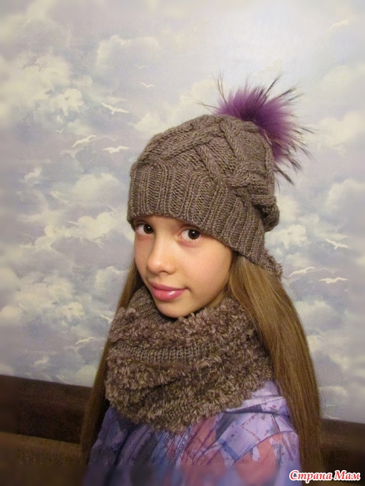 А вот эта шапочка была связана первой, она тут же перекочевала к дочери, так как оказалась тесновата для меня. Не рассчитала я
