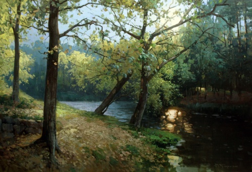 | Художник Роберт Цюнд, род. 3 мая 1826, Швейцария. "Буковый лес. Овраг" |